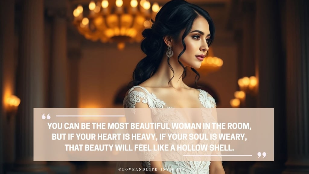 This is why beautiful women can feel profoundly lonely even when surrounded by people. You can be the most beautiful woman in the room, but if your heart is heavy, if your soul is weary, that beauty will feel like a hollow shell.