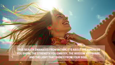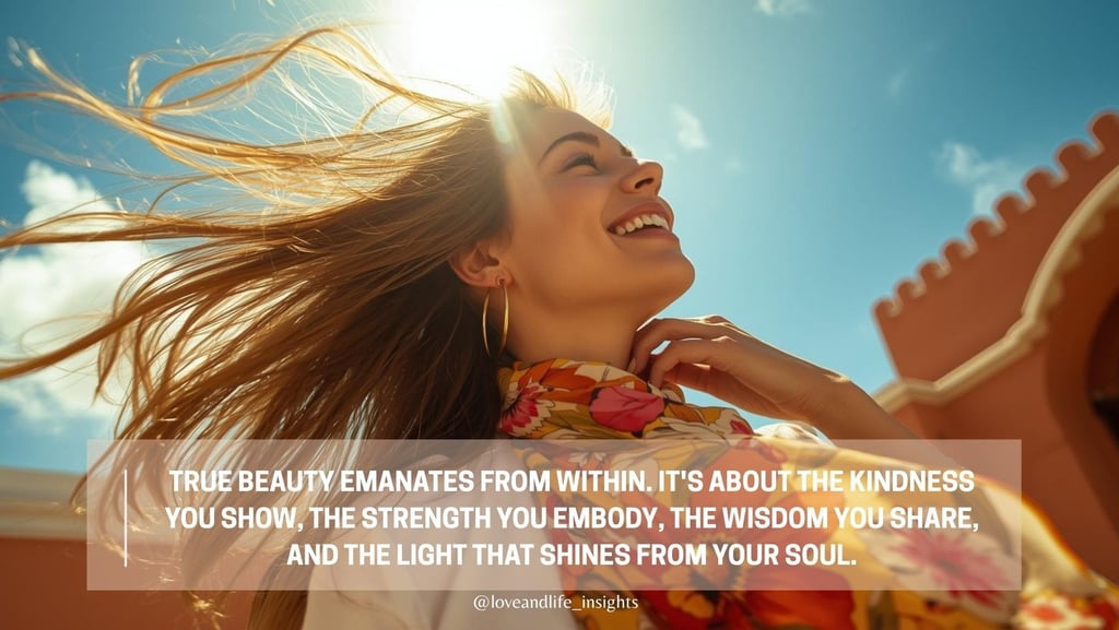 Remember, true beauty emanates from within. It's about the kindness you show, the strength you embody, the wisdom you share, and the light that shines from your soul. That's the beauty that deepens with time, that weathers every storm, that transforms not just how you look but who you are.