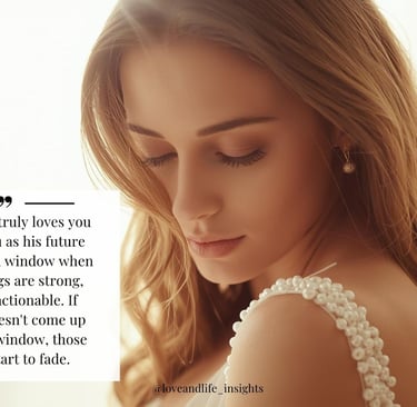 Love works the same way. When a man truly loves you and sees you as his future wife, there's a window when those feelings are strong, clear, and actionable. If marriage doesn't come up during that window, those feelings start to fade.