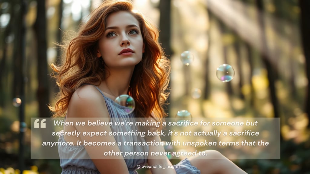 Let me be clear about something: When we believe we're making a sacrifice for someone but secretly expect something back, it's not actually a sacrifice anymore. It becomes a transaction with unspoken terms that the other person never agreed to.