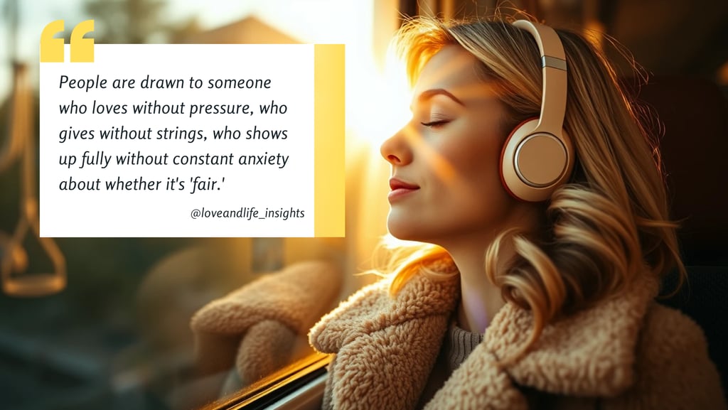 Because people are drawn to freedom. They're drawn to someone who loves without pressure, who gives without strings, who shows up fully without constant anxiety about whether it's "fair."