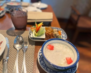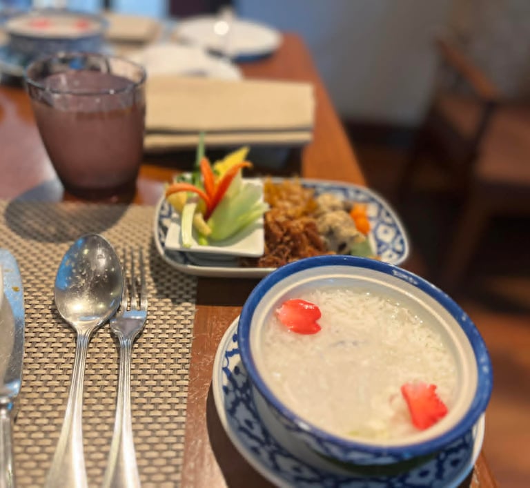 The khao chae at Hyatt Regency Bangkok Suvarnabhumi was the best I've had — cold jasmine-scented water, rice, and little accompaniments arranged with the kind of care that makes you slow down and actually taste. I've tried it elsewhere since, but nothing quite matched that balance.