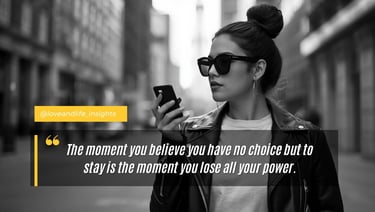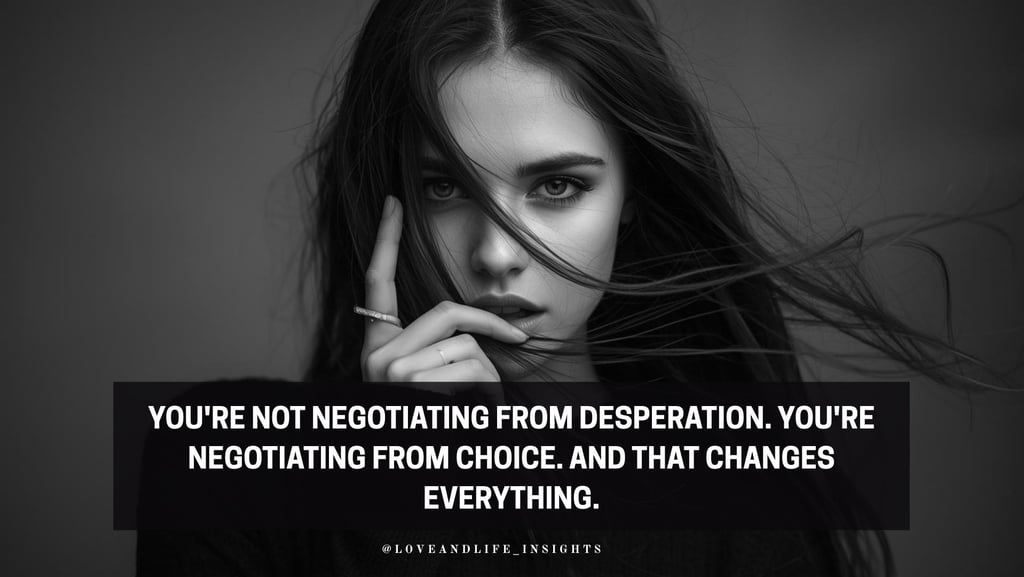 Think about it. When you feel like you have no choice but to stay - whether because you're financially dependent, emotionally dependent, or because you've convinced yourself that this is as good as it gets - you start negotiating from a position of weakness.
