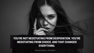 When you have a rich, fulfilling life outside your relationship - when you have close friendships, meaningful work, hobbies you love, a sense of purpose that exists independently of him - you're not negotiating from desperation.