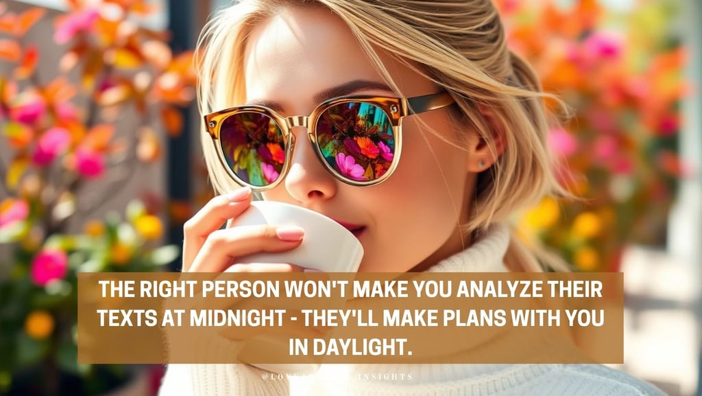 Because the right person? They won't make you guess. They won't leave you analyzing texts for hidden meanings. They won't keep you in limbo for weeks on end.