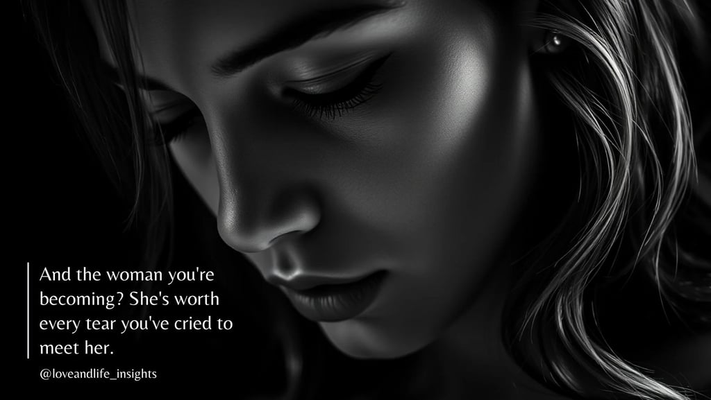 And the woman you're becoming? She's worth every tear you've cried to meet her.