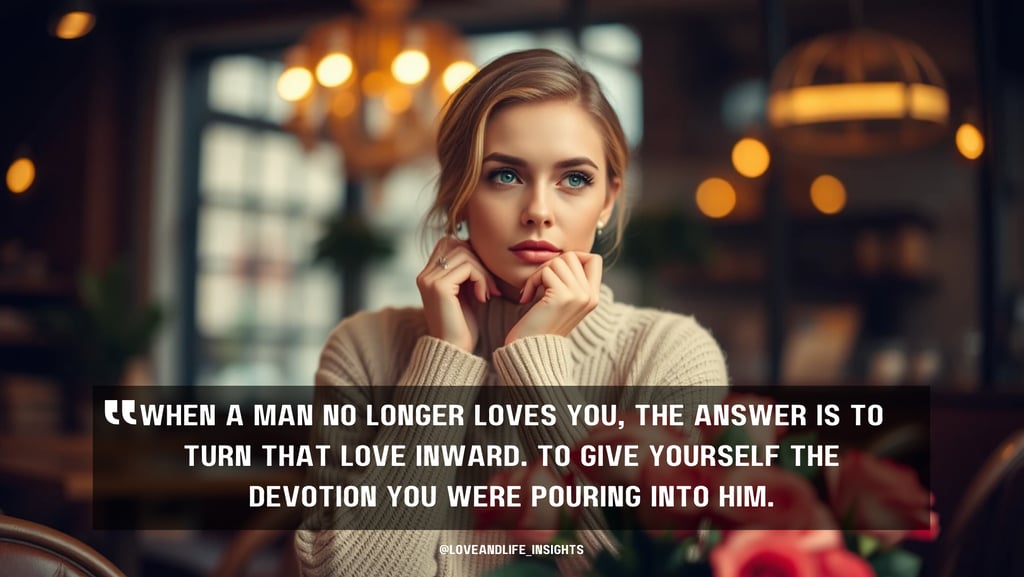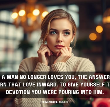 When a man no longer loves you, the answer isn't to chase him. It's not to diminish yourself or beg or prove your worth. The answer is to turn that love inward. To give yourself the devotion you were pouring into him. To nurture yourself with the care you were offering him. To choose yourself as fiercely as you were choosing him.