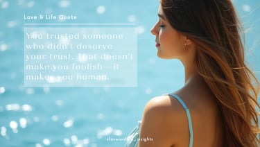 You trusted someone who didn't deserve your trust. You believed someone who was skilled at lying. That doesn't make you foolish - it makes you human. It makes you someone with a good heart who wants to believe the best in people.