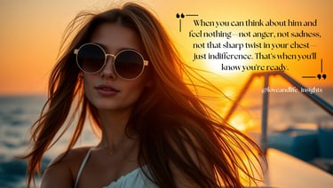 How will you know you're ready? When you can think about him and feel nothing. Not anger. Not sadness. Not that sharp twist in your chest. Just... indifference. Like he's a character in a movie you once watched and barely remember.