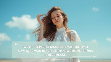 This is what healthy love looks like. Two whole people choosing to share their lives - not two halves desperately clinging to each other hoping to feel complete.